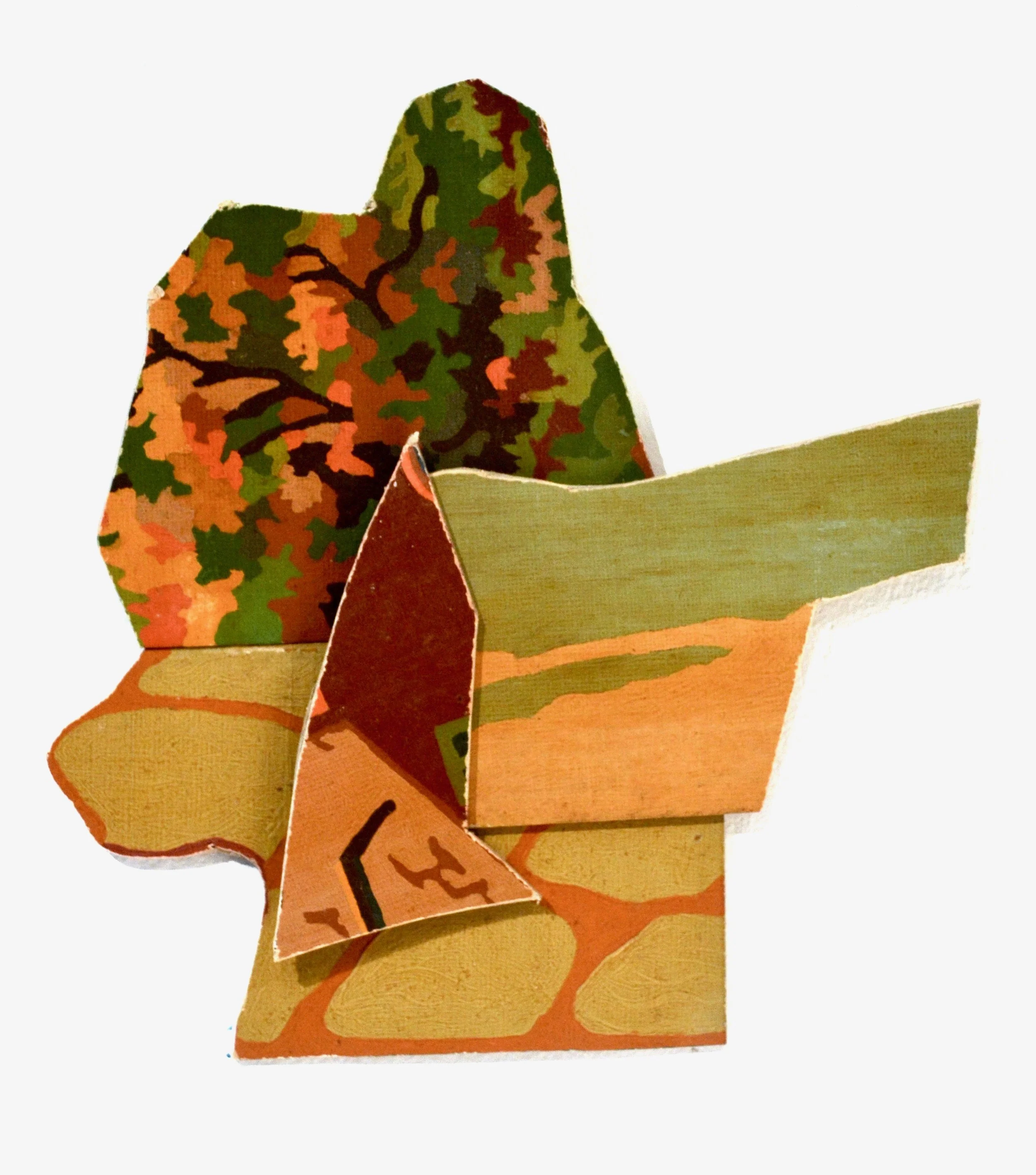 My grandfather was not a nice man. He was a racist, an abusive alcoholic, and my few childhood encounters with him were not extremely positive. He passed away in 2001. In 2017 my aunt gave me four paint by number pieces which she found packed away in her basement that my grandfather made in the early 1950s. The scenes were typical (landscapes, ballerinas, and a flamenco dancer), but I was drawn to the muted yellowed colors. I decided to try to make something visually interesting out of these boring pieces. It was cathartic to cut up his work in an attempt to create something new and esthetically intriguing for myself. I wrote about my experience creating these works in “The Catharsis of Collage”, Kolaj Magazine #25, winter 2019.